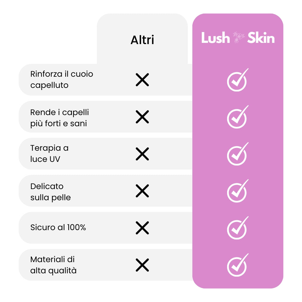 "La spazzola UV è rivoluzionaria! Uso un olio nutriente all'interno e, grazie alla luce rossa, i miei capelli sono più forti e voluminosi. Un trattamento professionale comodamente a casa!"